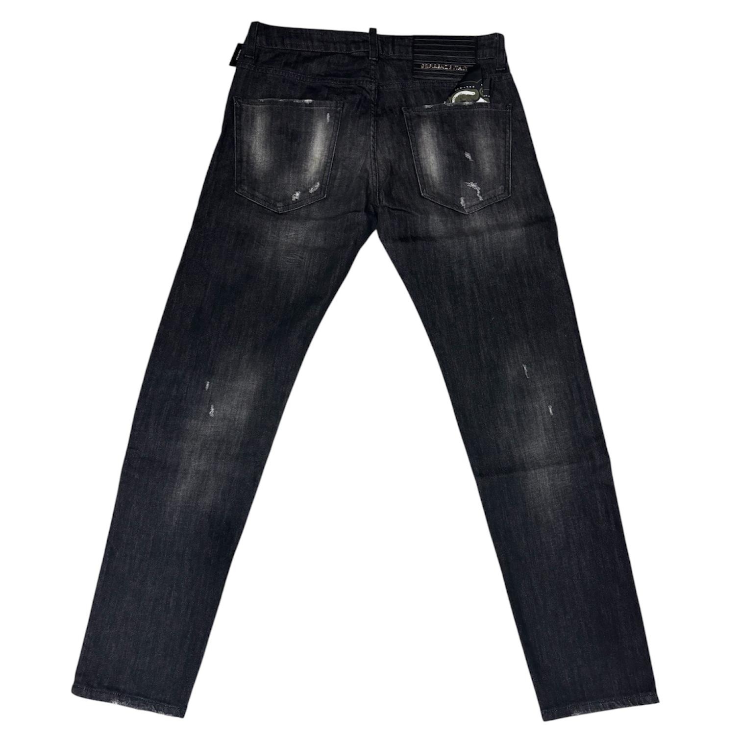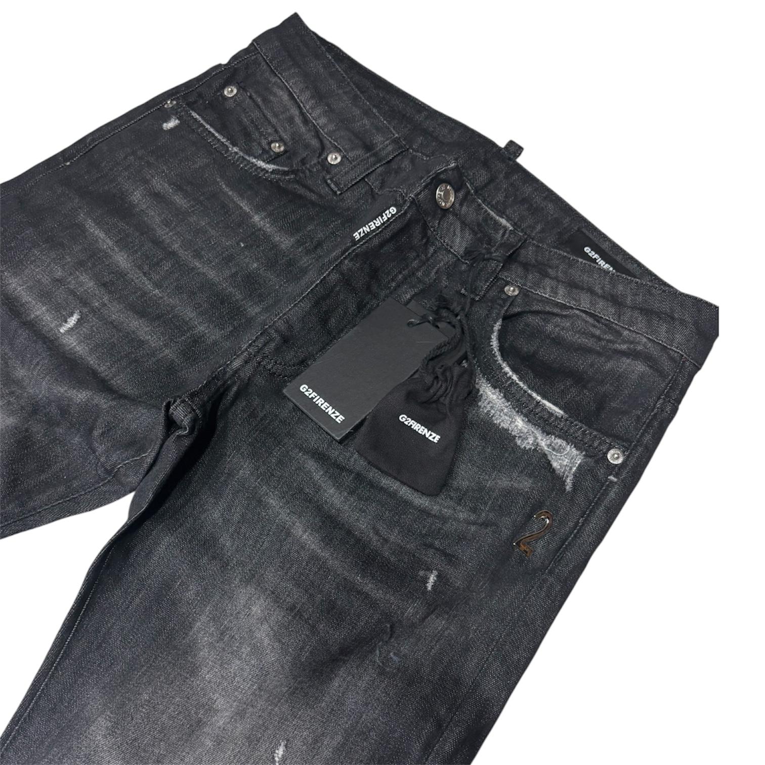 JEANS G2FIRENZE LAVAGGIO GRIGIO SCURO CON TARGHETTA IN ACCIACIO SUL DAVANTI E TARGHETTA NERA SUL RETRO, IN AGGIUNTA UN BELLISSIMO FOULARD G2FIRENZE DA ABBINARE A PIACERE